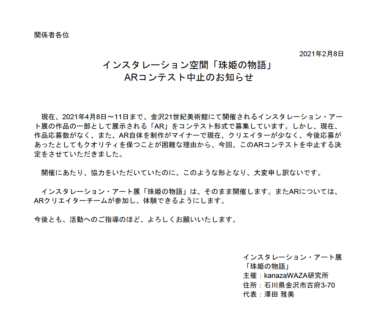 KANA WAZA AR AWARDSに関するご質問・お問い合わせがある場合、